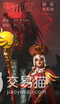 多尔西是一名爆发输出型法师,号称群星支配者,在众多法师当中拥有着最高的爆发能力,另外还有这非常恐怖的面板,高达上千万的攻击力,几十亿的血量,非常的惊人面板属性甚至会让人忘记她是一个法师。
