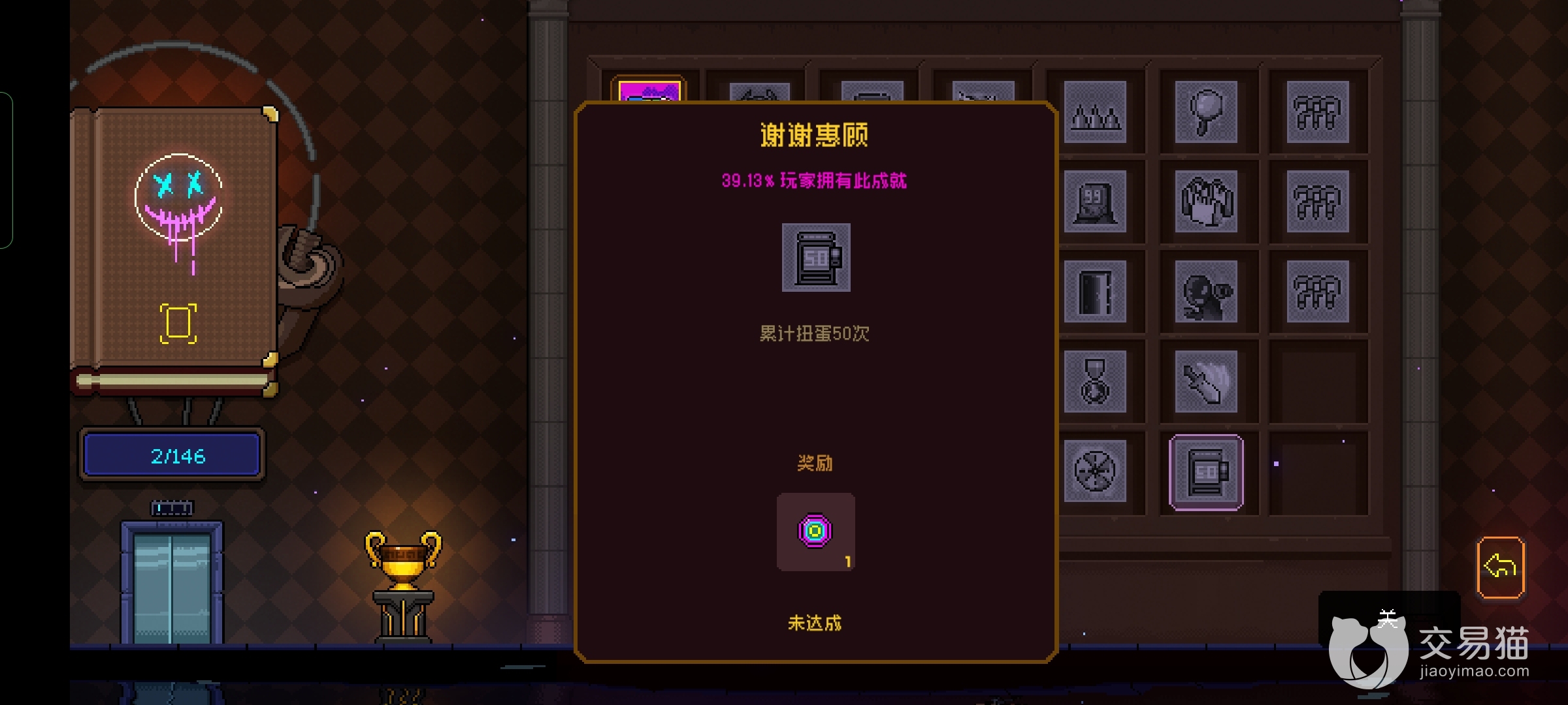 想要完成这个成就就需要开300次抽奖,然后玩家来到电梯前往收藏室右手就是玩家的成就进度和完成奖励的领取界面,在这里可以很明显的看到玩家完成的成就内容,这个成就是逐级解锁的成就,玩家第一阶段是五十抽奖励霓虹币,最后300抽就能获取自选礼包了,主要也是纪念品。