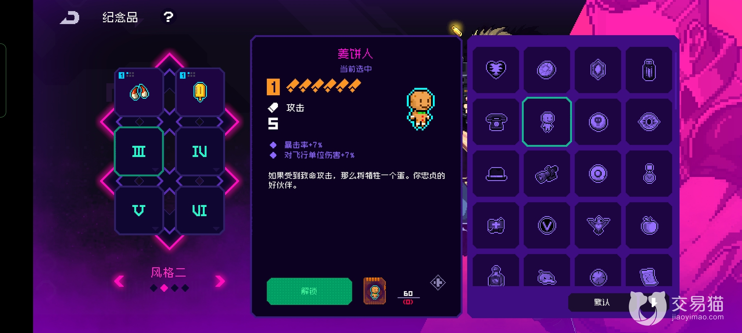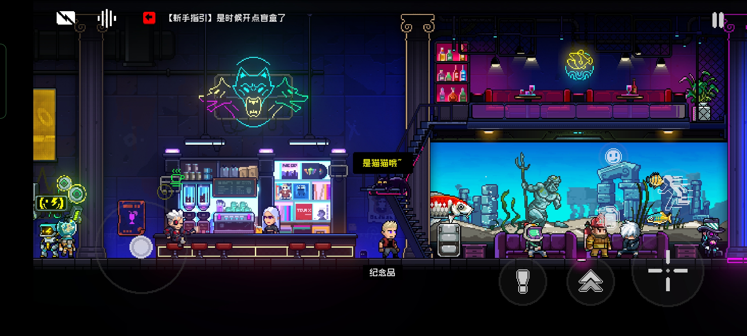 首先玩家一定是知道霓虹币抽奖机的存在的,这个机器可以开出很多好用的纪念品,一旦开出可以来到酒吧的猫这里装备这些纪念品,这样出门除了找武器和收集蛋之外可以少走不少弯路。