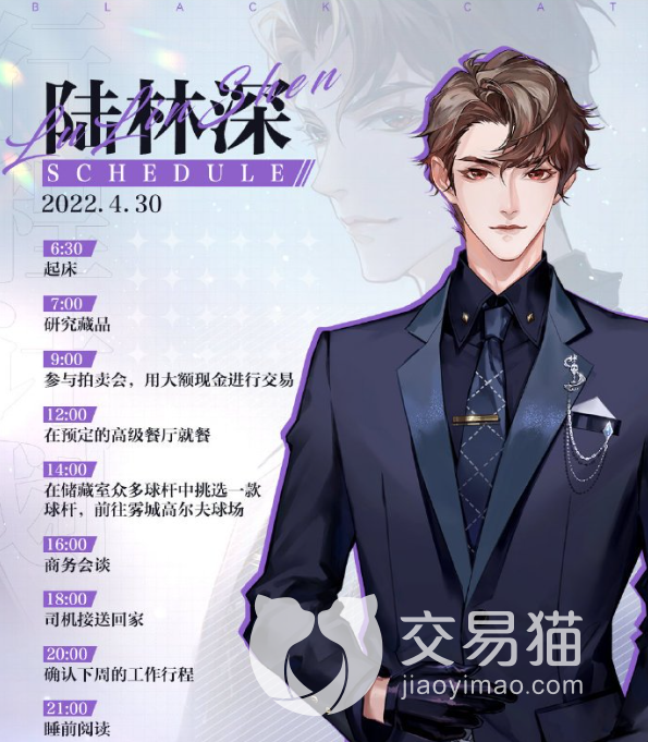 这个角色在主线剧情中是一个家庭背景非常优质的对象,作为一名收藏家的身份,他经常会出现的各种拍卖馆中,也是最深不可测的一个攻略对象,传说他是那个世界中最有钱的一员,在剧情中如果碰见一下拍卖物品上的难题,基本都是会找他进行解答。
