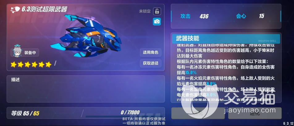 展开的机体有如六翼天使一般浩瀚,而她的角色属性也和外观十分贴近,是冰属性,并且针对此元素其技能也有着相应的联动。