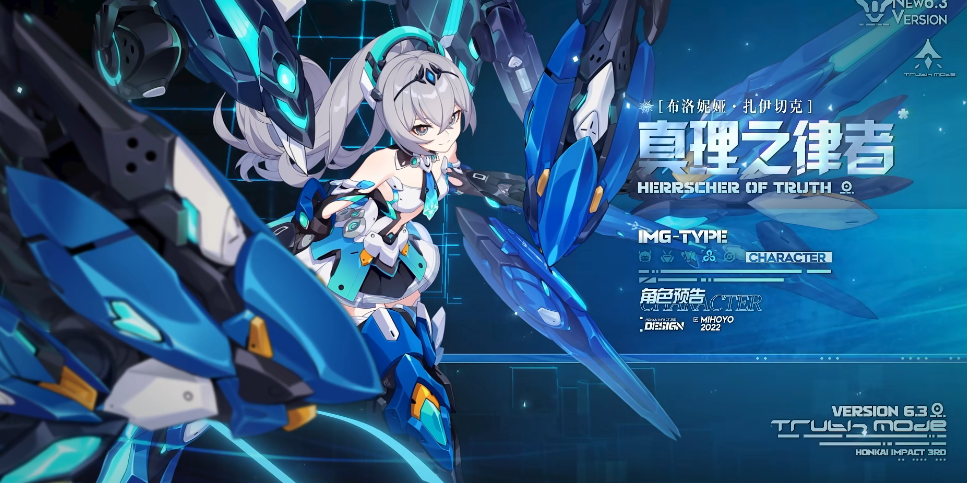 真理之律者在游戏中又叫布洛妮娅,她自身是一位白发的萌妹子,背景故事中经历了许多沧桑,所操控的机甲非常华丽。