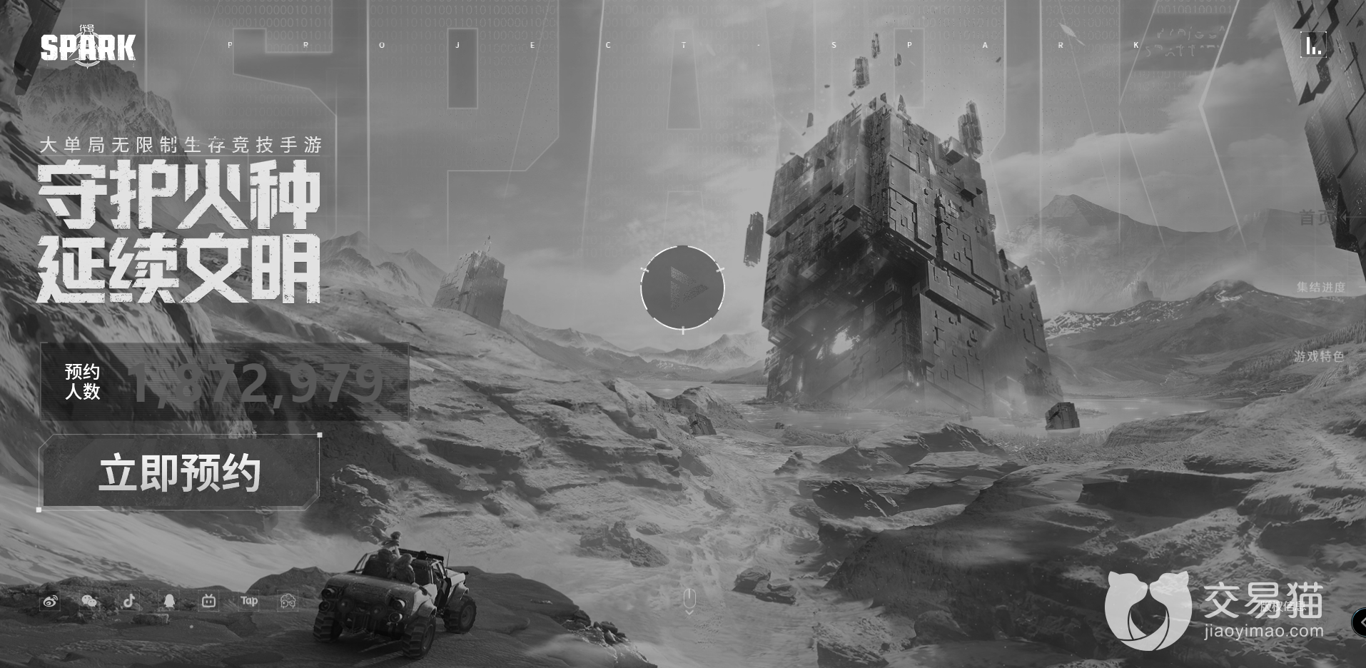 代号spark测试资格的获得方式其实不难。咱们首先需要打开九游的网页,搜索代号spark游戏,找到游戏后点开会弹出一个巨大的页面左下角有着立即预约字样。咱们话不多说立即预约。