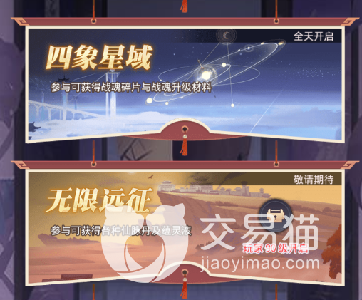想进入“无限远征”副本,得先将游戏内的等级提升到90级,然后在通过主页面的“玲珑幻境”进入,然后这时候就会看到上面有4个副本——昆仑墟、四象星域、无限远征和玉虚道场。