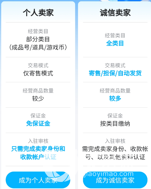 2、成为卖家不用多么复杂的手续,只需要做个简单的实名认证就能成为个人卖家,要是想出售多个素材号的话,缴纳部分保证金然后成为诚信卖家,这样除了能批量上架多个商品之外,还能够获得“诚信卖家”的认证,吸引更多的买家来看。