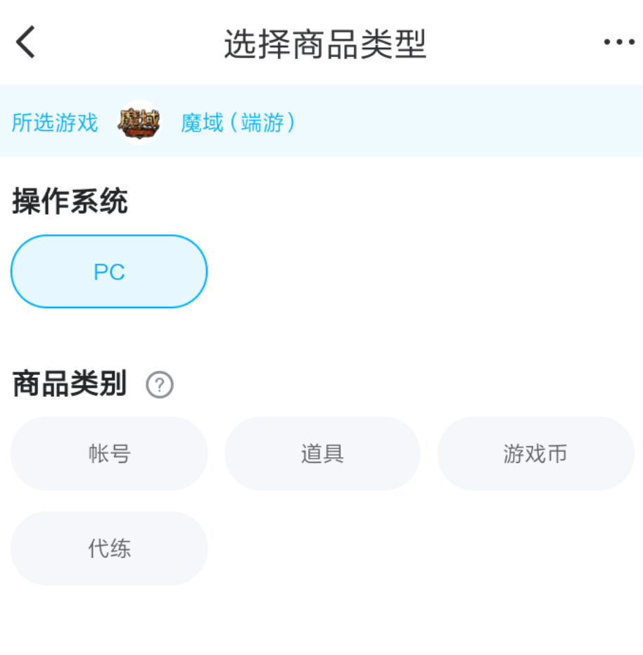 3、成功的拥有了卖家身份之后,各位就可以开始出售自己的游戏账号了。首先选择好商品的类型,然后按照提示将账号当中拥有的一些核心内容进行介绍,这样才可以让感兴趣的买家前来浏览商品。成功发布之后,各位等待其他用户进行下单即可。