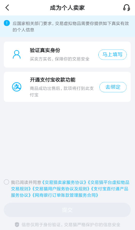2、各位在出售之前,可以在平台内申请一个卖家身份,整体的操作流程十分简单,大家只需要经过个人身份的验证和开通支付功能就行。之所以需要大家获得一个卖家身份,主要是平台严格的交易机制当中,需要保证每一个交易商品都是真实的,而卖家身份可以拉高发布商品的门槛。