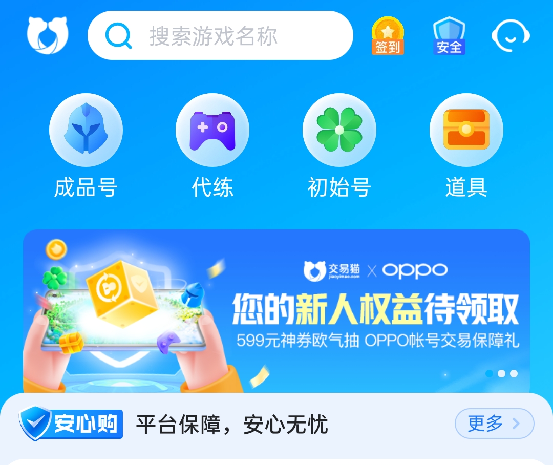 将从各大应用市场的下载量可以看的出交易猫的用户群体很大,大多数的玩家都愿意在交易猫购买账号,因此卖家的账号在交易猫中销售的速度会很快。再加上交易猫是大公司旗下的正规交易平台,背后有强大的资金所支撑,无需担心平台会跑路。在交易猫平台中玩家不仅可以出售成品号,像其它的抽卡号、开局号以及游戏道具、代练等等的资源都可以进行出售,涵盖的种类十分的丰富。