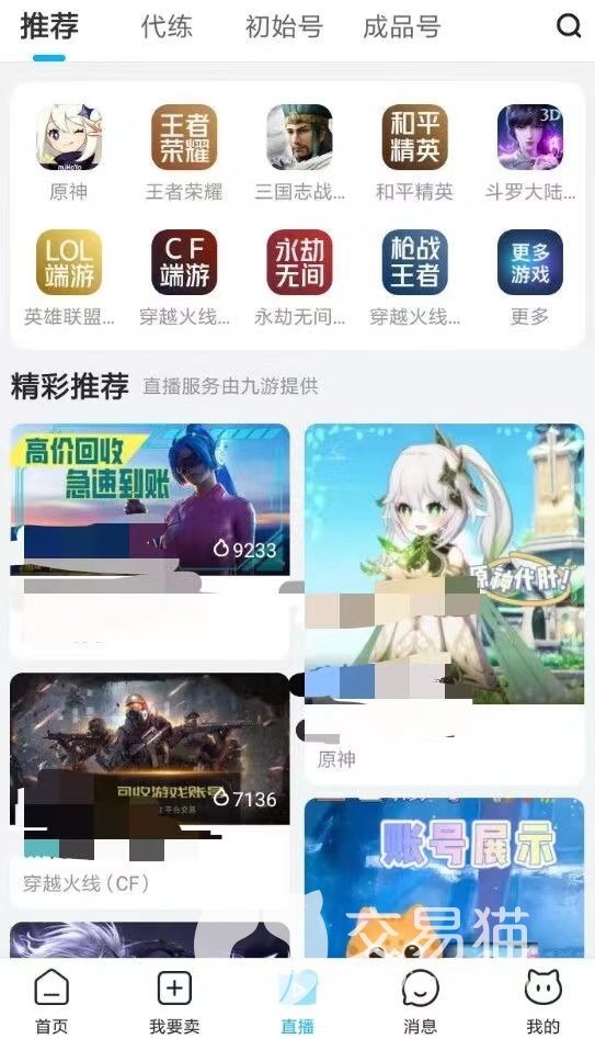 在现在的交易猫上使用了当下最流行的直播推荐游戏,玩家们可以点击直播间,看着主播们的介绍,跟随主播的视角,来感受全新的游戏玩法,在空闲时间里主播还会发送许多平台福利,小伙伴们不妨来看看。