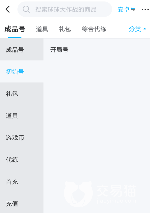 3、也有部分玩家并不热衷于去获取一个成品账号,大家想要通过更实惠的价格去购买一个初始号。那么大家在球球大作战的交易频道内,只需要通过分类功能,筛选出初始号的交易内容即可,有效帮助玩家解决精准内容的问题。