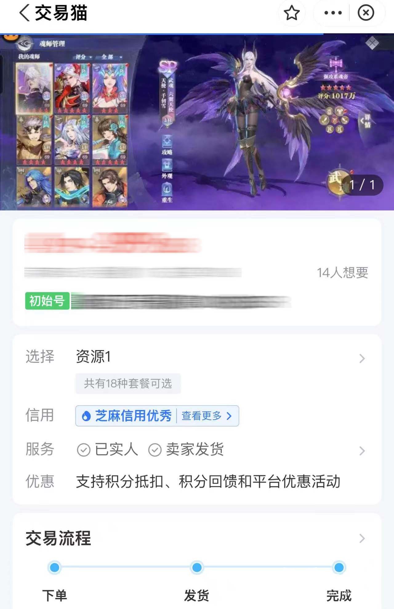 虽然说开局号很诱人,可以自己选择想要的极品魂师。但是游戏的安全性才是最重要的,毕竟大家都不想游戏号玩到很久之后就被人找回了。不过在交易猫上购买就可以放心,这里都是有担保的,确认收货后才会返款给卖家,这时你可以随时退款。并且也有安心购服务,若是账号丢失就可以申请赔偿,不会让你受损,而且卖家都需要进行实名认证。