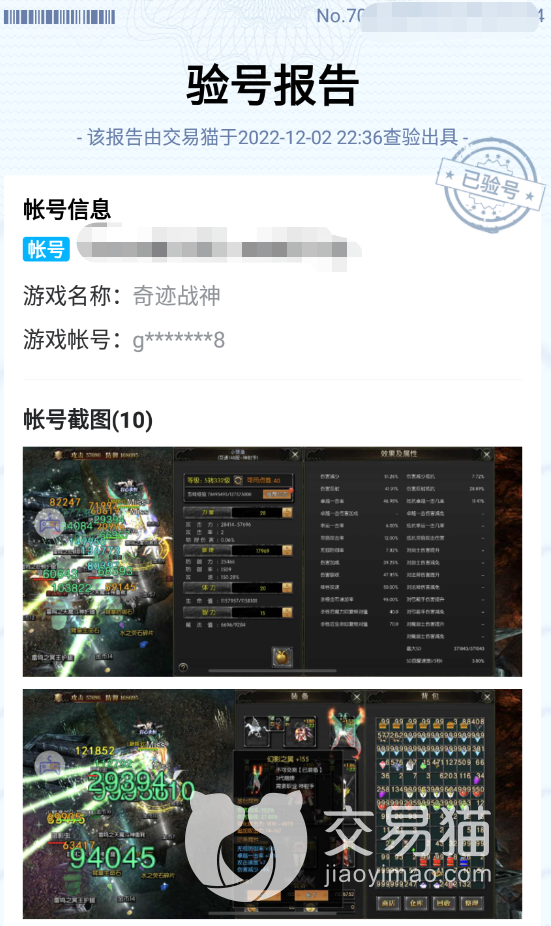 2、账号类型多,平台发货极速。交易猫平台上有许多不同类型的账号,涵盖奇迹战神游戏不同客户端区服,多种武器类型与账号特点展示。而且提供专业的24小时在线客服,有买家拍下奇迹战神账号后,在工作时间内30分钟可以完成账号的换绑,卖家省心,买家安心。