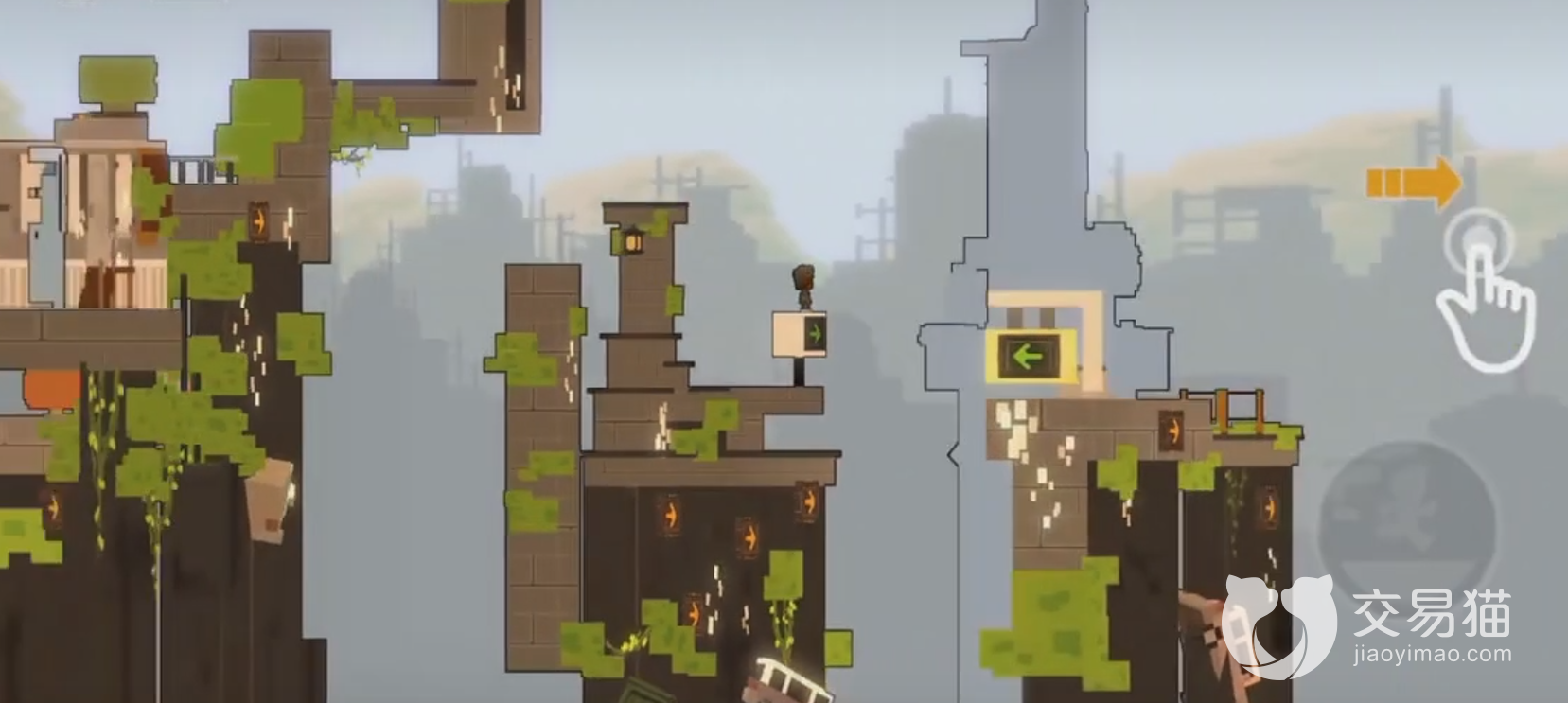刚开始第一章的时候游戏的关卡难度并不高,更多的是一个教学体验。在玩家们熟悉跳跃之后,就来到了游戏第一个需要知道的知识点。玩家们可以点击屏幕,然后滑动视野,将原本的视野转向,从而利用视觉的错觉形成一条新的道路。这一点是游戏的核心机制,异常的巧妙。