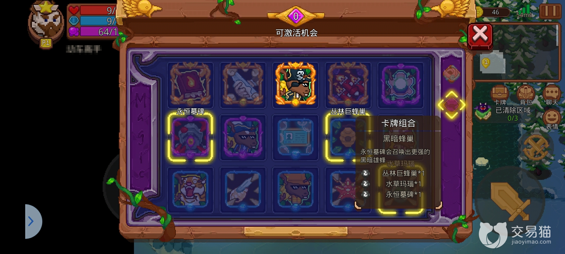 首先玩家来右手边的这个蓝色头发的精灵身边开启自己的编辑,就以现在最受欢迎的召唤生物的卡牌组合为例子,玩家获取紫色的”永恒墓碑“效果是使用技能召唤一个墓碑会放蝙蝠单位攻击敌人,蓝色品质的牌”蜂巢“效果是召唤一只蜜蜂,白色品质的牌”水草”有了它帮手会跑的更加快,只要玩家在游戏当中携带这三张之后需要点亮它们就能发动组合的效果,让墓碑改为召唤更强的生物,然后携带上图的四个组合,就能构成召唤大军也就是大哥大里面的生物,这些东西相互配合伤害不高但是组合起来可以乱拳打死老师傅。