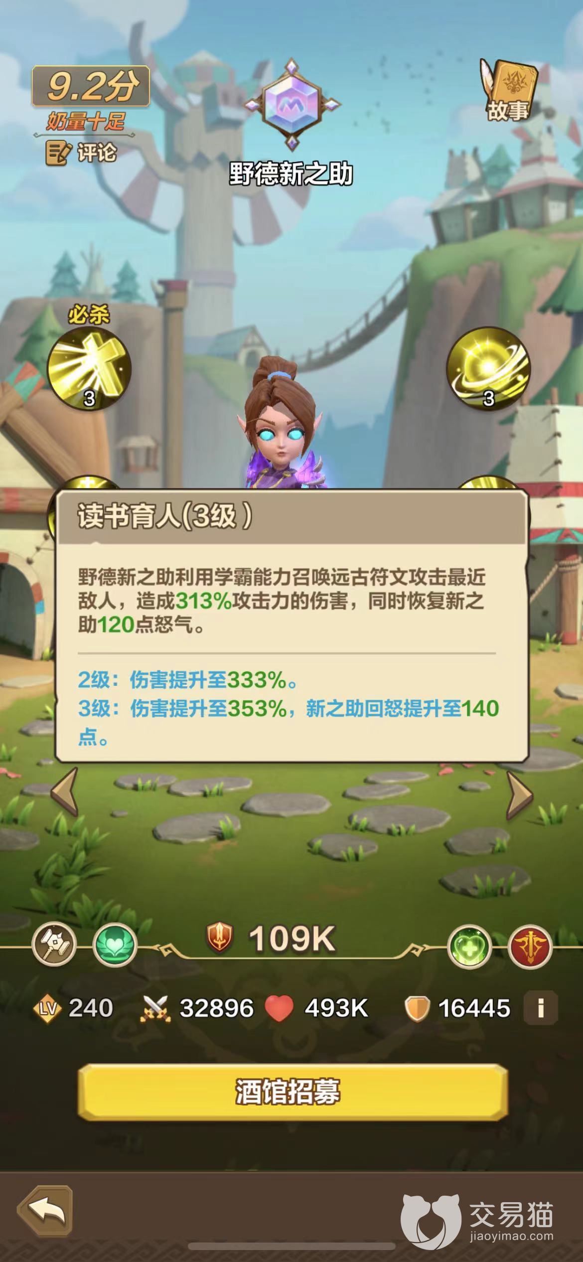 读书育人:野德新之助会对自己最近的一名敌人进行攻击,攻击的伤害量由野德新之助的攻击力决定,在攻击的同时也会回复野德新之助一部分怒气值。
