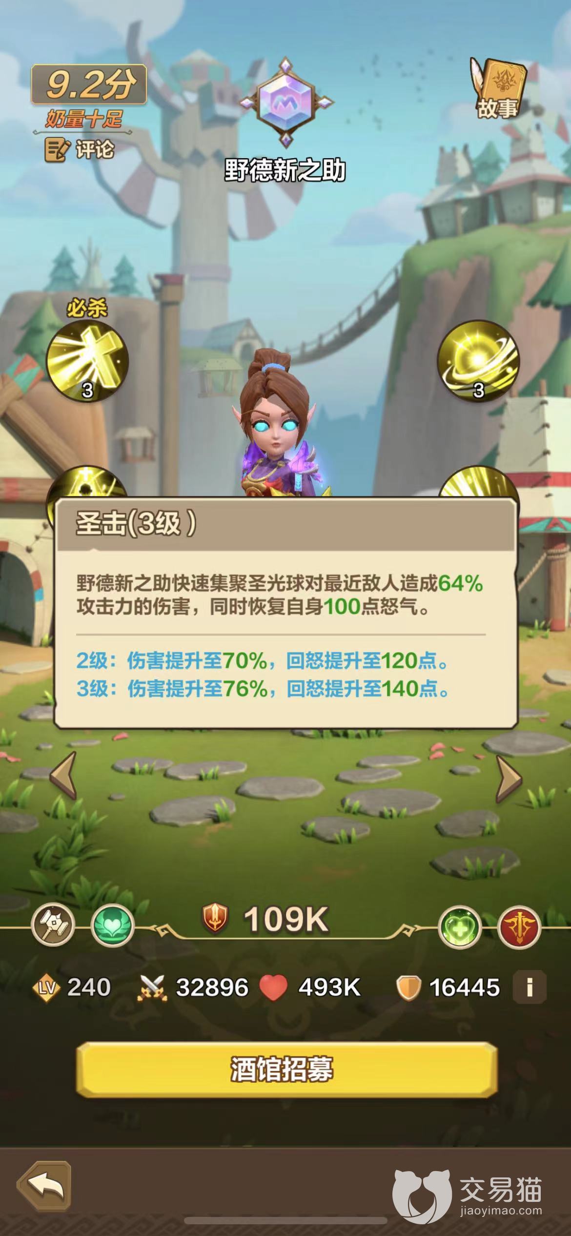 圣击:小范围伤害技能,野德新之助会对自己周围的敌人进行攻击,攻击的同时还会增加自己的一部分怒气值。