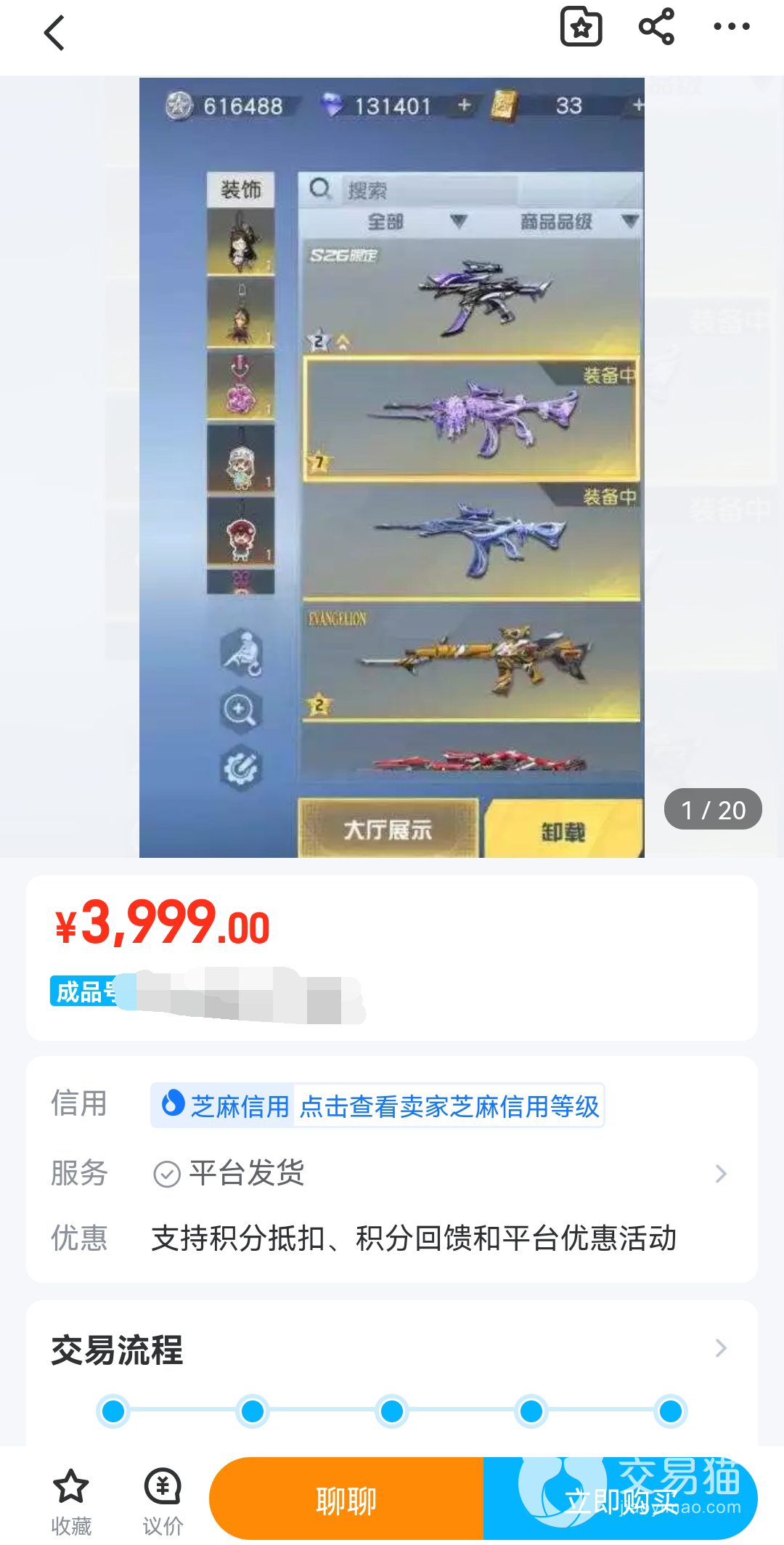 想要购买优良的账号,对于账号信息的知晓是十分的重要。而在交易猫平台当中,游戏账号的账号信息被很明显的显示出来。不仅显示出了游戏的道具和价格,还显示出了卖家的信用以及想要游戏账号的人数,可以让买家轻松掌握帐号资讯,迅速决定购买意向。