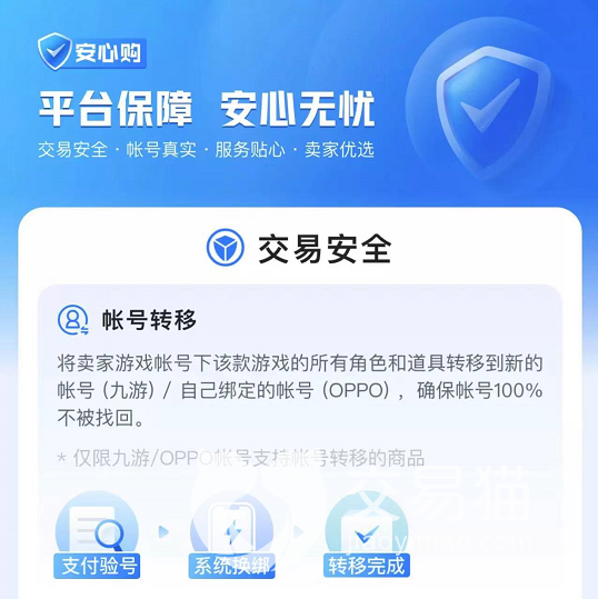 小伙伴们如果在其他平台交易的时候,号被盗或者是被骗,不能追回我们的利益损失,一定就会不知所措,但是在交易描就能避免这种情况,若卖家找回帐号,买家可在交易成功90天内联系平台客服,提交申请、提交资料、赔偿审核这套流程,最后获得订单全额赔偿。购买含有安心购标签的商品可免费获赠保险,保险期限内若帐号被找回、封号、回收,最高可获得订单全额赔偿,这样不仅能买的安心也能用的放心。