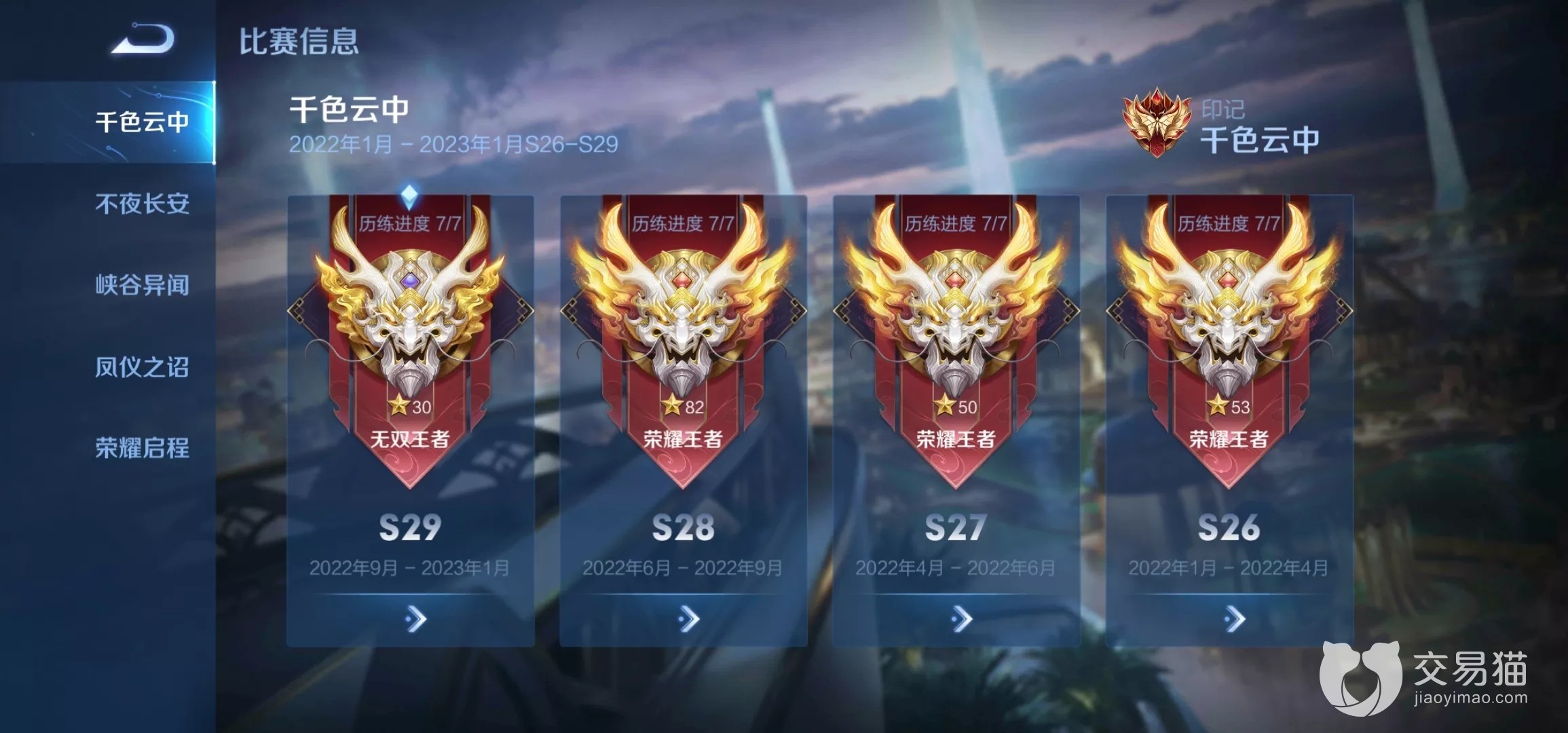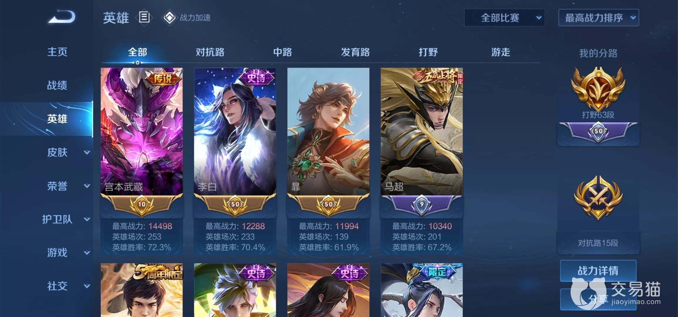 对于一个竞技游戏玩家们肯定都是想追求着更高的段位和荣耀排名,对此王者抓住这一点针对每个英雄开创了战力排名这一说,也就有玩家提出了王者荣耀万战号能卖多少钱的疑问,毕竟对于一些有操作和意识的玩家来说,上万战还是轻轻松松的,甚至有的玩家五天以内就可以从零战力打到万战,如果能挂在交易猫平台卖钱那就更加划算了,接下来就由小编来给大家分析一下吧。