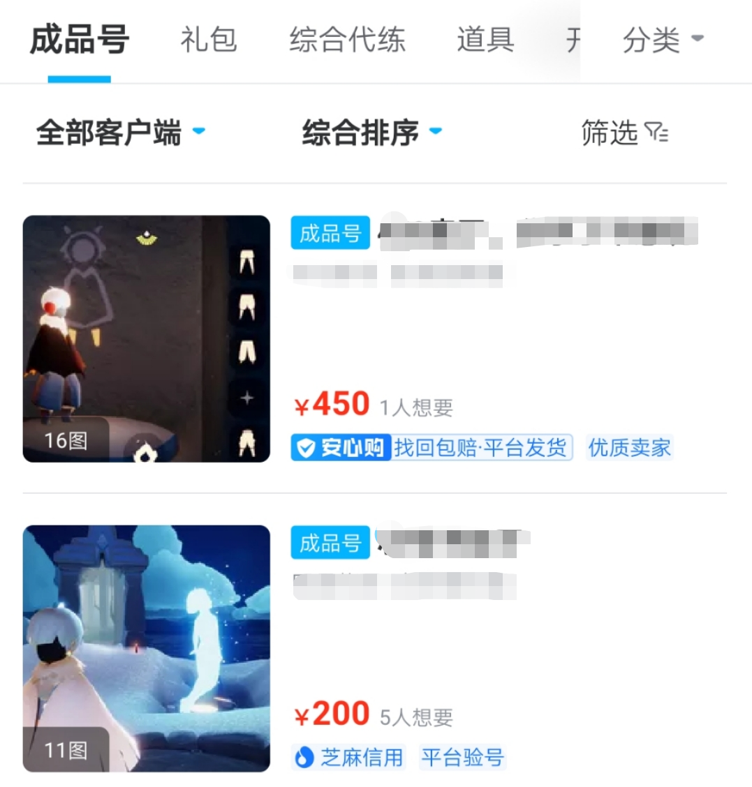 不想辛苦练号,但是又很羡慕别人的成品号,其实只要自己去买一个账号来玩就可以了。小编推荐大家用交易猫这个平台购买光遇成品号,里面的成品号质量很高,包含了光遇各个区服的账号都有,在平台里可以自由选购账号,交易还特别安全放心。
