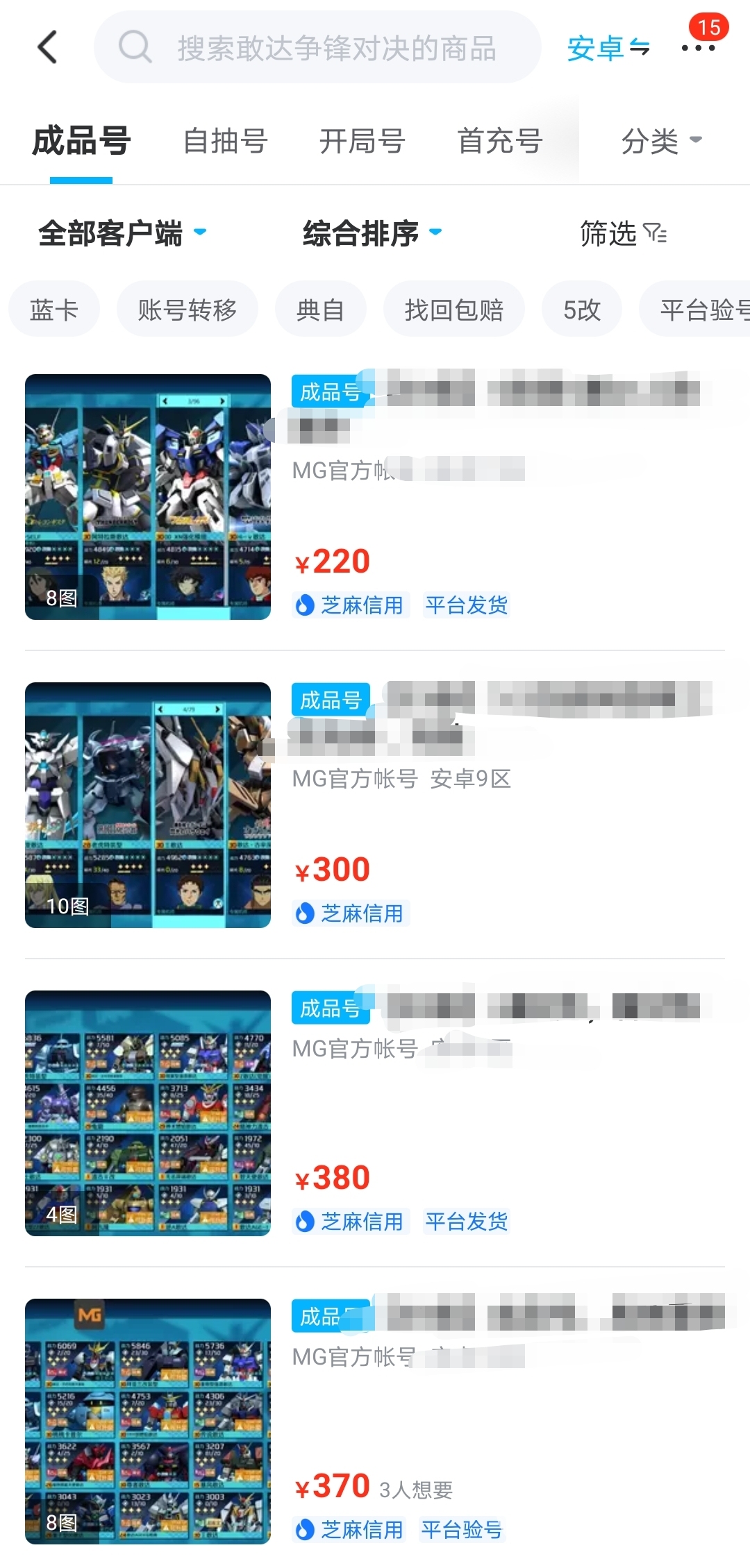 小编推荐的这款app名叫交易猫,这上面上架的敢达争锋:对决成品号特别多,各种品质的账号应有尽有,能满足屏幕前小伙伴们的多种需求,可挑选的空间比较大。