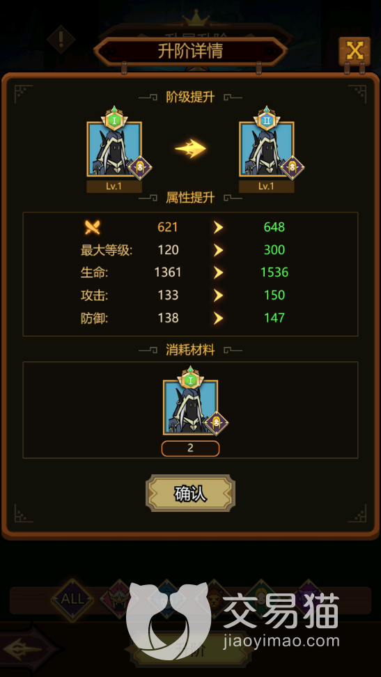 升阶完成后,英雄的生命,攻击和防御三项属性会得到小幅提升,这点数值不足挂齿,真正有用的是它对等级上限的开发。