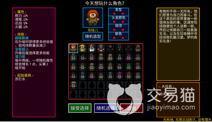 这个角色是新手选择比较多的,它自带的核心技能是潜力股,特征就是每次升级两级以后就可以加任意属性一点属性点,在前期可能优势不明显,但是后期是成长比较快的,需要大家花时间来培养。