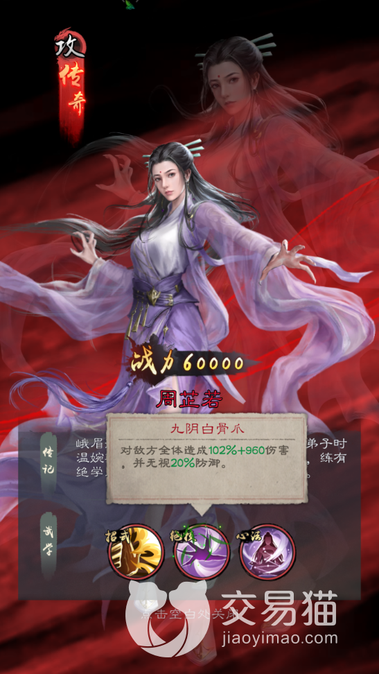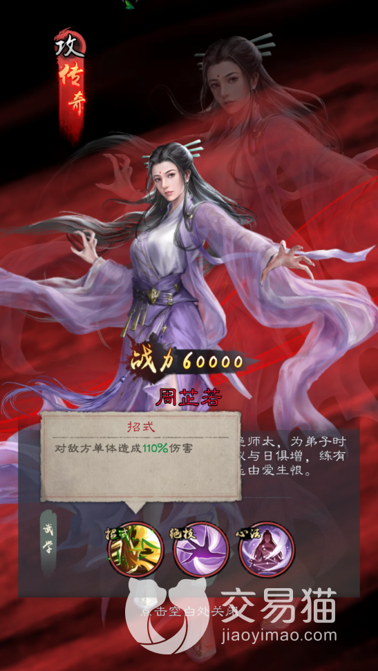 游戏中,她是一位红卡,属于品质最高的一批侠客,其战力高达六万,入手后可增加二十点侠义。