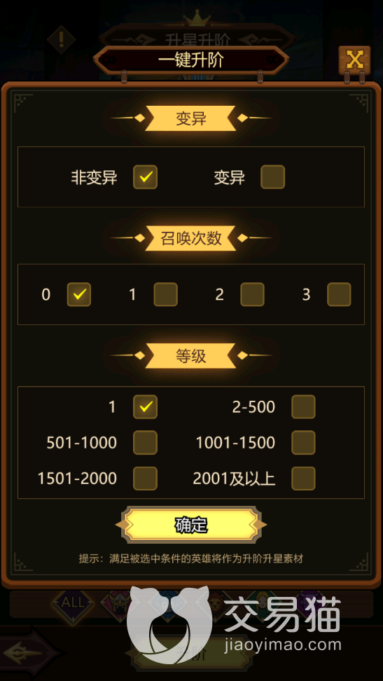 换言之,只是为UR第一次升阶,就需要玩家招募至少六千次。如果有时正好除了两个变异的相同UR,还不得不忍痛割爱,毕竟变异往往有着比普通英雄更为强悍的属性与性格。但这界面的提示还是比较人性化,当你将作为珍贵英雄作为升阶材料时,它会询问一遍你是否确认。