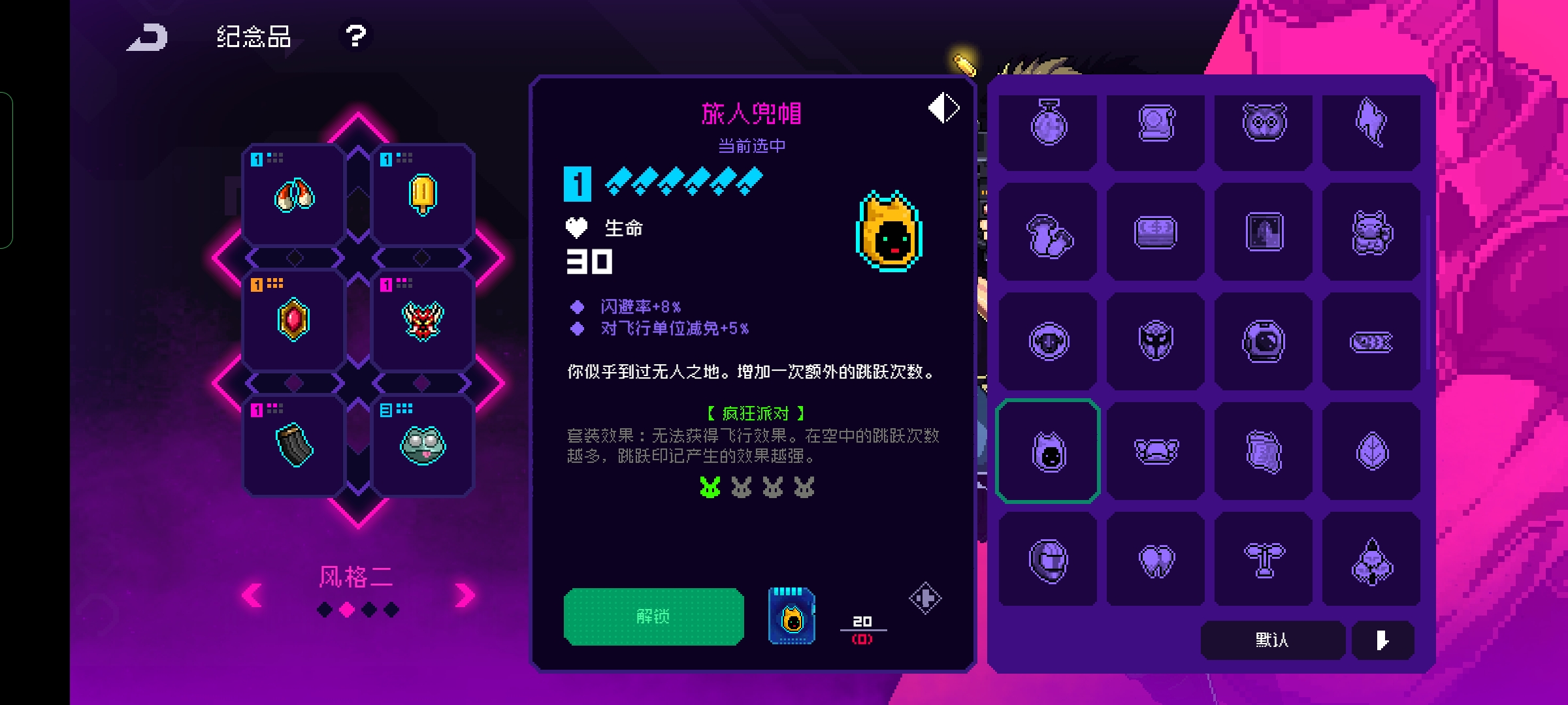 最后这些物品的位置都是处在六号位置所以玩家如果有了飞行注意取舍,这些物品有词条疯狂派对集齐之后会让玩家失去飞行能力,有了飞之后记得避开这些纪念品。