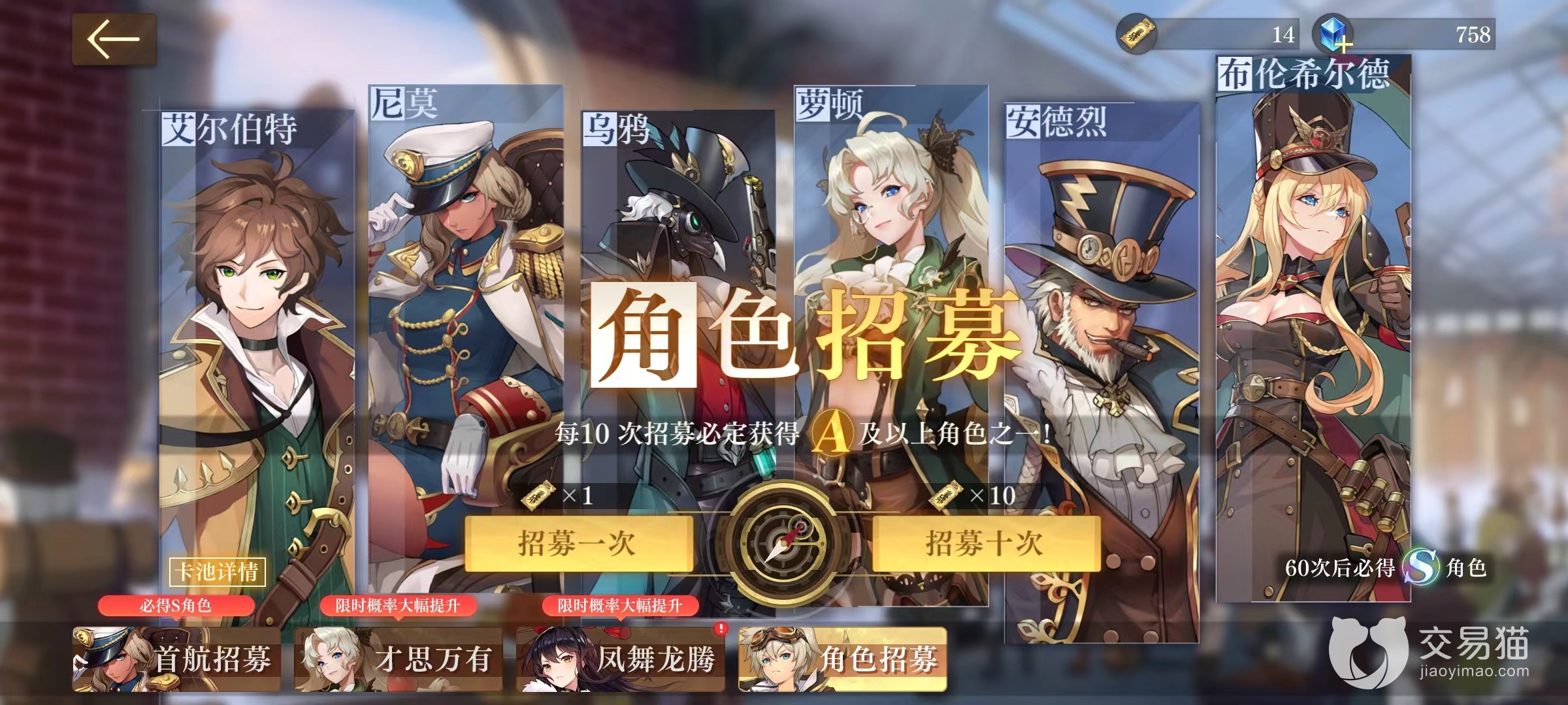 这个卡池是官方提供给新手玩家的一次性卡池,每个玩家只可以抽取10次,随机获得一个s角色。首航招募卡池概率提升的s级角色有尼莫、安德烈、埃尔伯特。