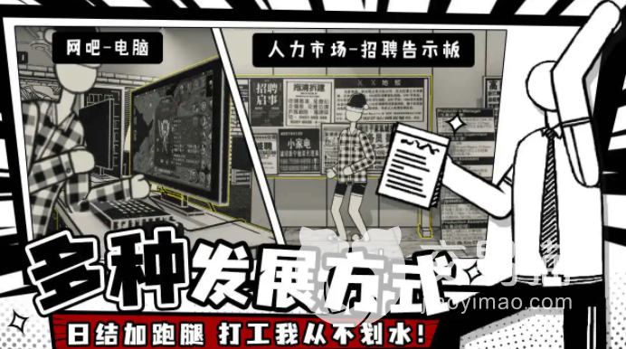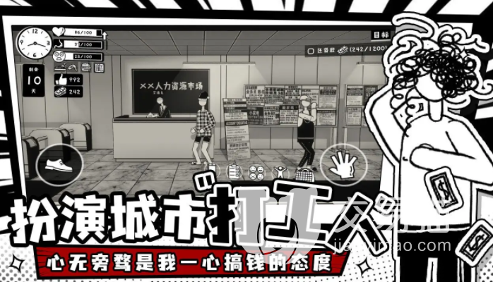 首先这款游戏的体验感非常足,玩家的角色会是一个拥有生命值,体力值以及心情不同属性的全新人物。在这里,我们可以通过打工来体验不一样的人生,初始选择的工种不一样,我们后续的发展也会有所不同,打工的话会获取收入,我们可以通过自己的兴趣爱好来选择合适的招聘广告,例如有日结月结,还有正式工作,有的赚钱多,有的赚钱少,不过发展方向肯定是不同的,玩家还能在游戏内与NPC进行互动,每一个打工的方式都是在小游戏内获取收益,玩家们可以一边打工一边赚钱发展,后续的话,这些钱也都是可以用于我们的日常生活以及投资。