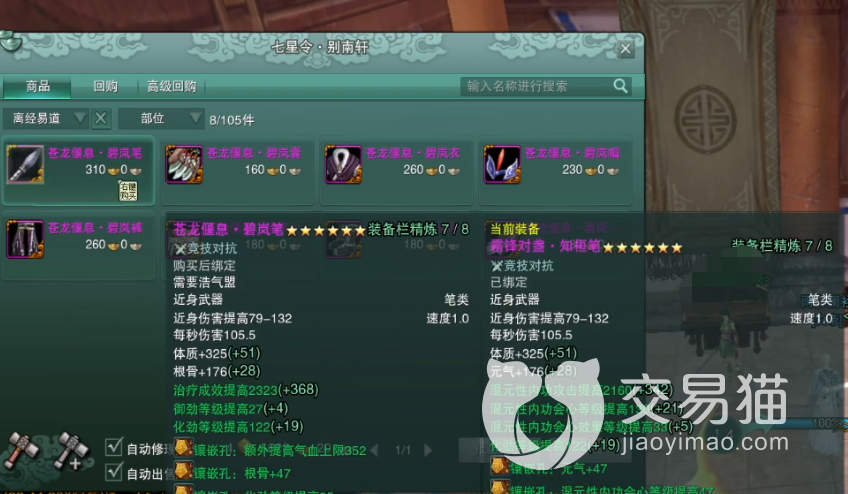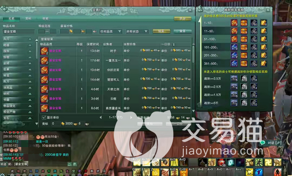 游戏里面为玩家设置的交易所名称为万宝楼,玩家在里面可以购买金币装备以及其他一次消耗性道具。与官方设置的内购外观商店不一样的地方就是,万宝楼是由玩家之间完成交易的,种类更加多,还有不同玩家出售品质不一、价格不一样的成品装备,各位玩家购买之前可以货比三家。