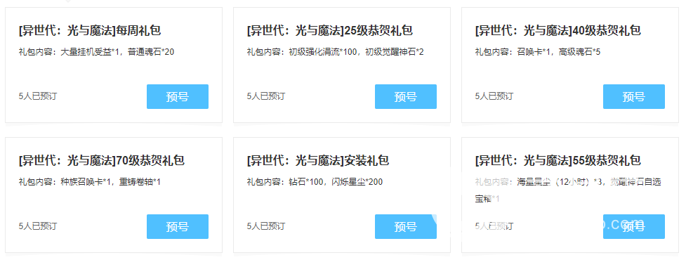 以上就是今天给大家带来有关异世代光与魔法活动首发奖励有哪些的相关介绍啦,大家可以参考一下上面的介绍,然后等到游戏上线就可以去游戏中领取一下哦,现在建议大家先去九游预约一下哦。