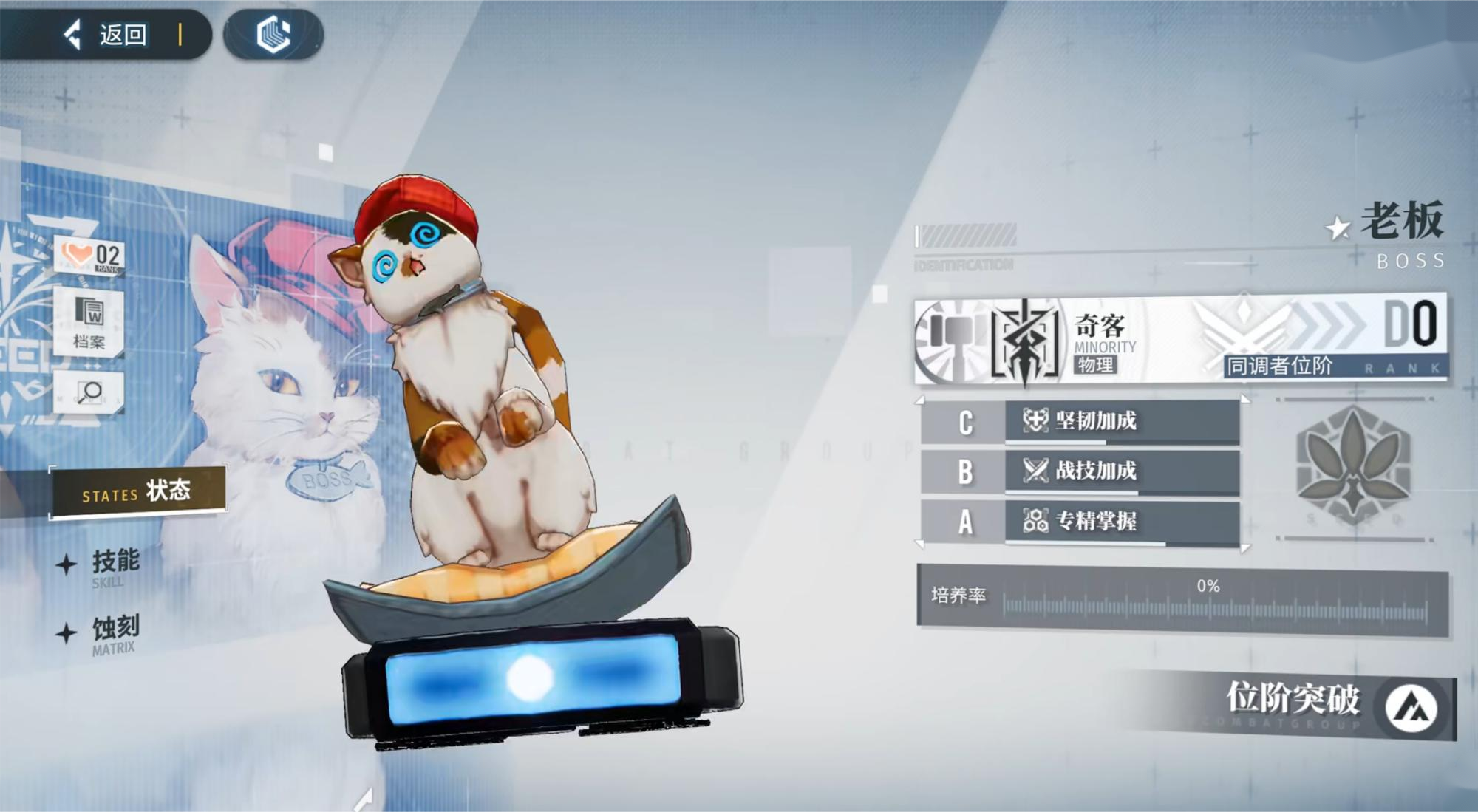 作为可以选择的角色品质相对于其他人型角色肯定要低一头的,不然被一只猫打败人生也太失败了,主要的定位也是作为辅助角色协助其他角色作战的。