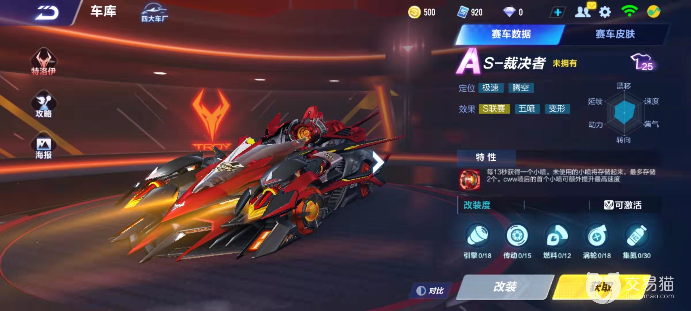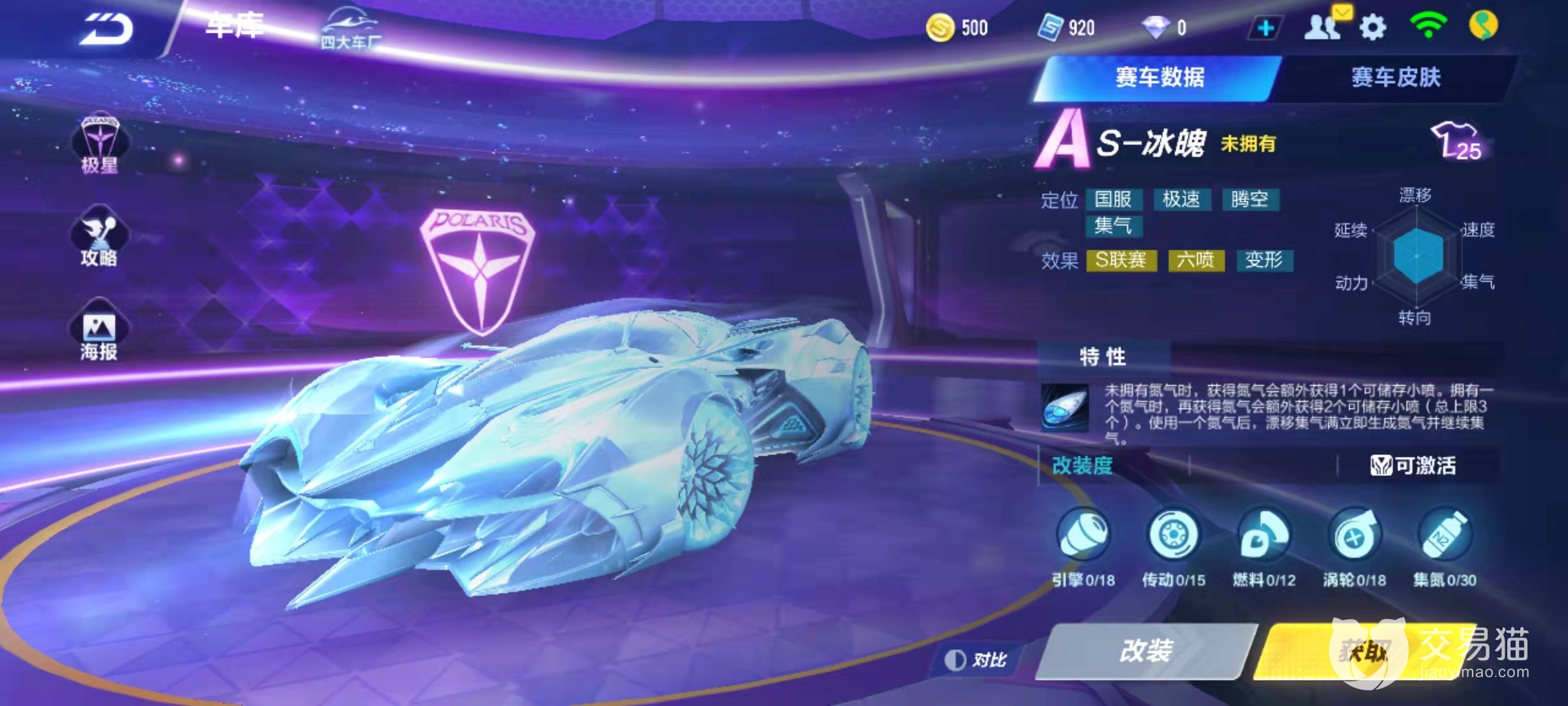 ①S-冰魄,作为一个六喷车,它不仅拥有炫酷的变形功能,并且在加速上也是造诣颇深,每次获得氮气都会额外储存小喷,并且在使用氮气后再漂移集气,会立刻获得下一个氮气,如此反复循环几乎可做到全程加速。
