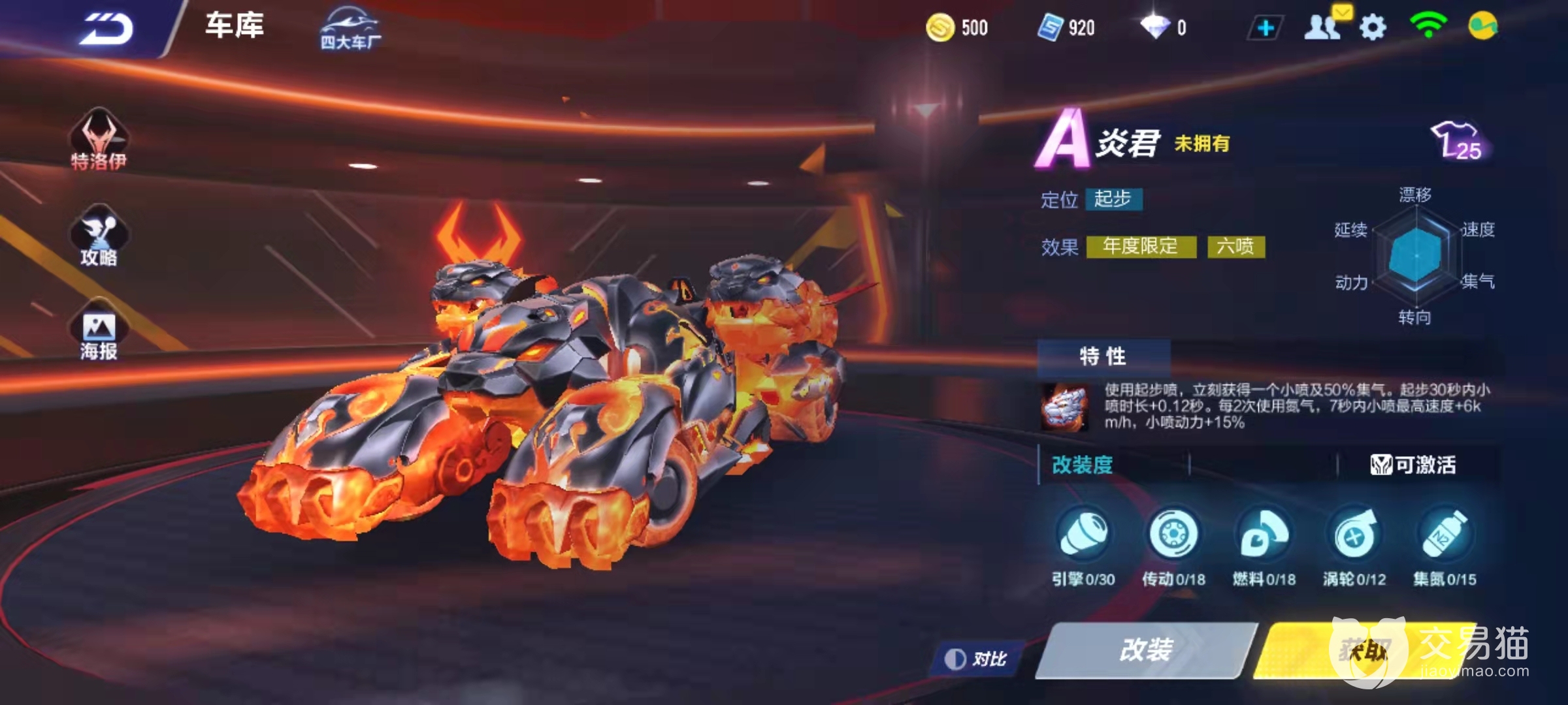 ③炎君,这辆车其强势之处主要在于起步,众所周知,每次游戏开始,玩家都可以使用一次小加速,但这个加速无论是幅度还是时长都很小。