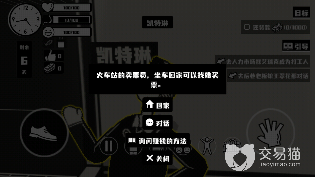 关于买车票这个事也可以找凯瑟琳,但金钱没攒到一千六之前,是无法成功购买的,因为游戏主线的基本目标就是赚够一千六,只有这样才能回到老家还清房贷。