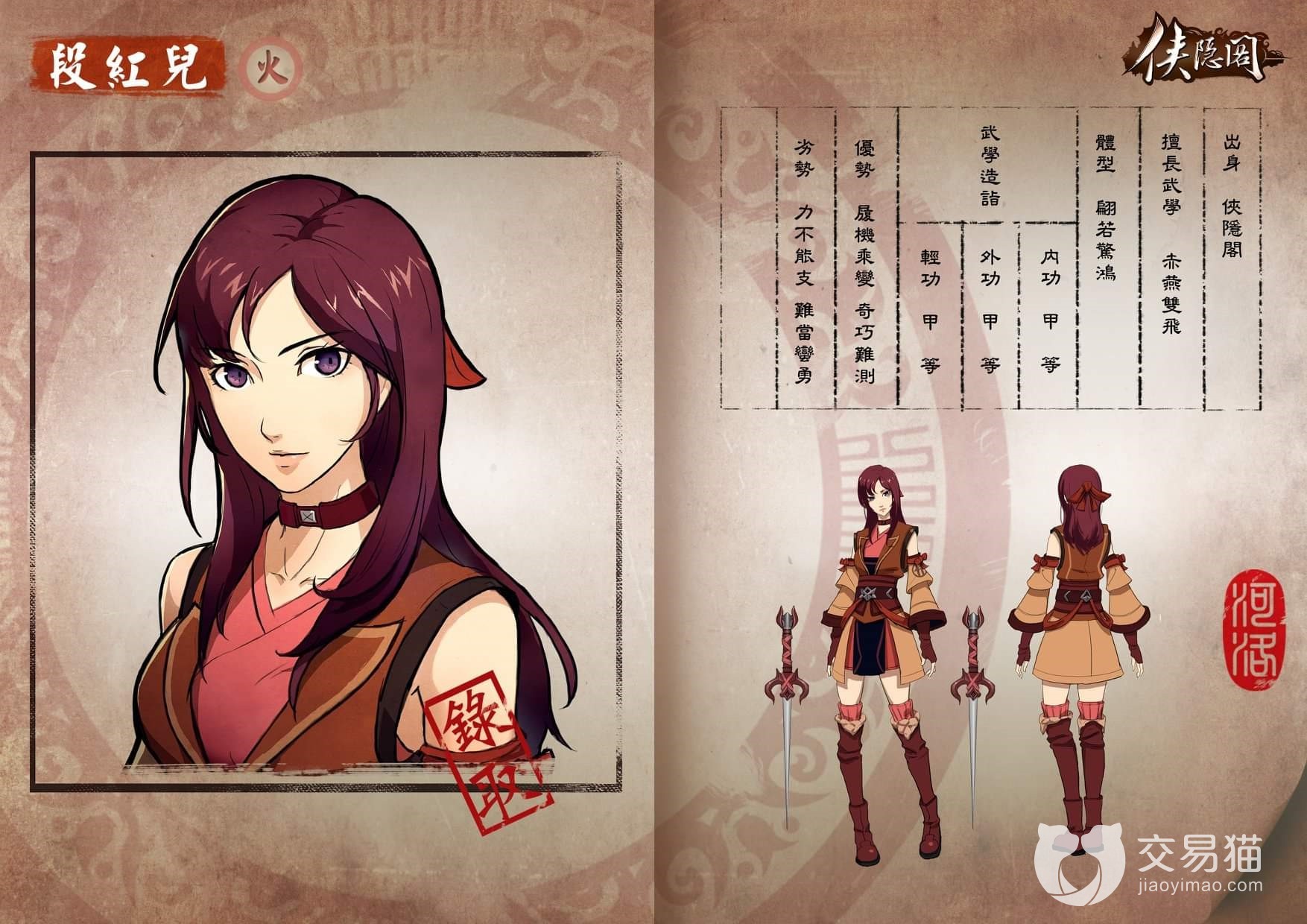 段红儿,从小就在侠隐阁长大的红发姐姐,身份比较神秘,但和后面会介绍的一个知名大侠可能有关系,喜欢糖葫芦,性格比较正经,人气颇高的一个角色。南飞鍠,典型的吊儿郎当风流少年,喜欢剑南烧春,定位有点像流浪剑客,好在不是猪队友。