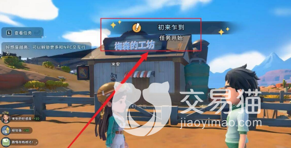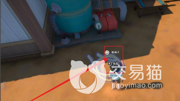 咱们的第一根粗绳子是在剧情任务中就能获得,直接在沙石镇地区梅森的工坊接取任务,任务名叫做初来乍到,和NPC对话进入剧情,接着就会让你去拿一根粗绳子,按照任务上标的点,也就是工坊的地面上,会看到一根很显眼的绳子,就是道具粗绳子。