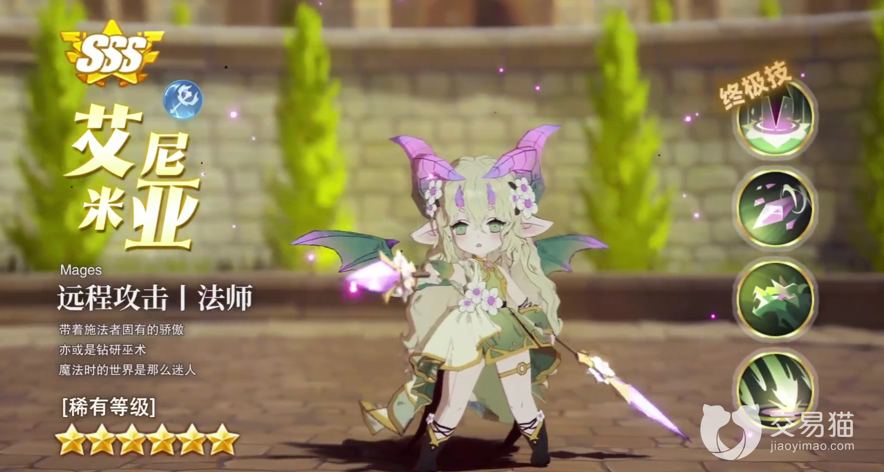 公会大厅禁灵之谷刷的公会专属副本,需要会长们消耗活跃值召唤,击败他会获得大量的工会币,钻石以及金币装备,只需要在一分半钟内尽力输出就可以了。 与上面的猫猫相似的是,除开一技能可以对前排有较为不错的输出时,剩下的基本上就是一个魔法版的招财猫,也是血量越低,属性越好。