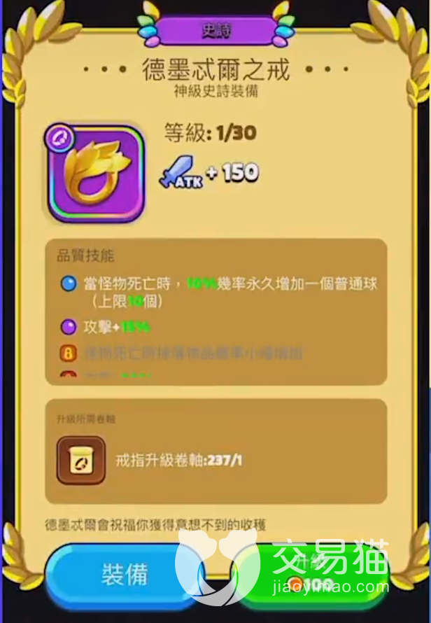 基本刚拿到一套装备的时候,在这个装备的详情界面就可以看到一处升级的图标,刚开始的这里刚开始的时候基本都是使用金币进行升级的,不过后期还可以使用卷轴对其进行强化,这个是之前的版本中升级方式,后面应该变化也不大。