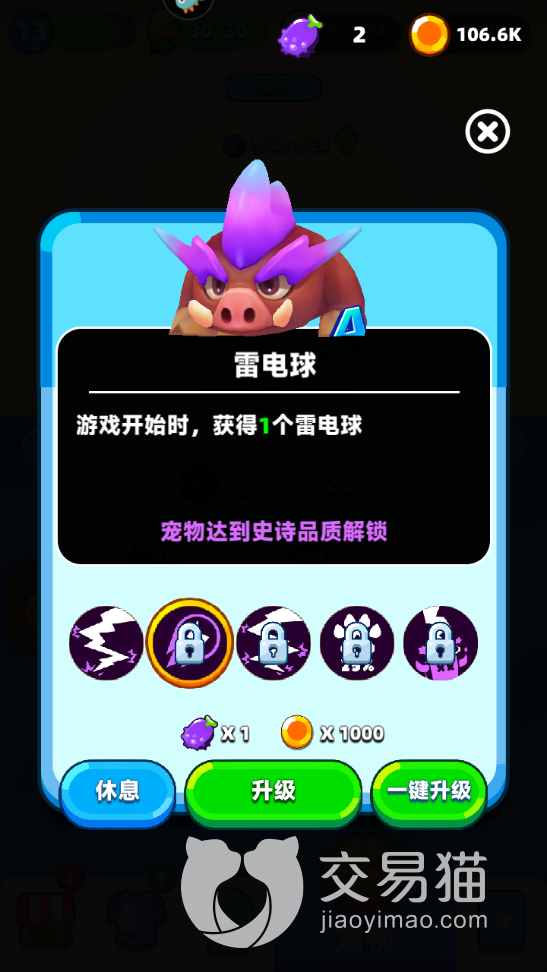 然后进化这方面,普通到史诗级的宠物进化所需条件都是统一的,但从史诗开始再往上,条件就变了,从原本的两只相同品质相同种类的宠物,变成了只需要品质相同的一只任意宠物即可。