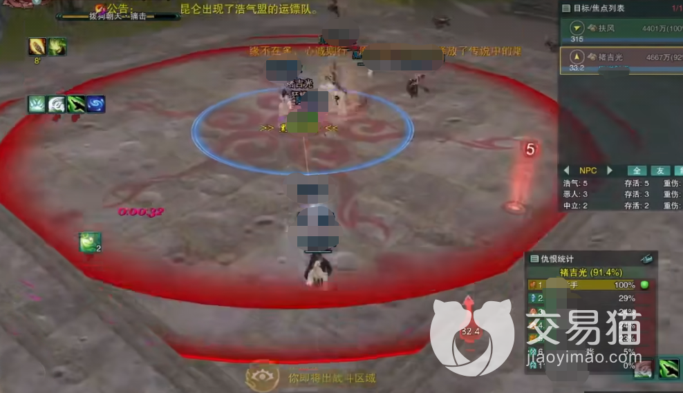 这是一个外功类型的boss,拥有8,900万血,玩家可以使用天策作为主坦,开怪引BOSS原地拉背对,输出与治疗角色站在boss的背后。