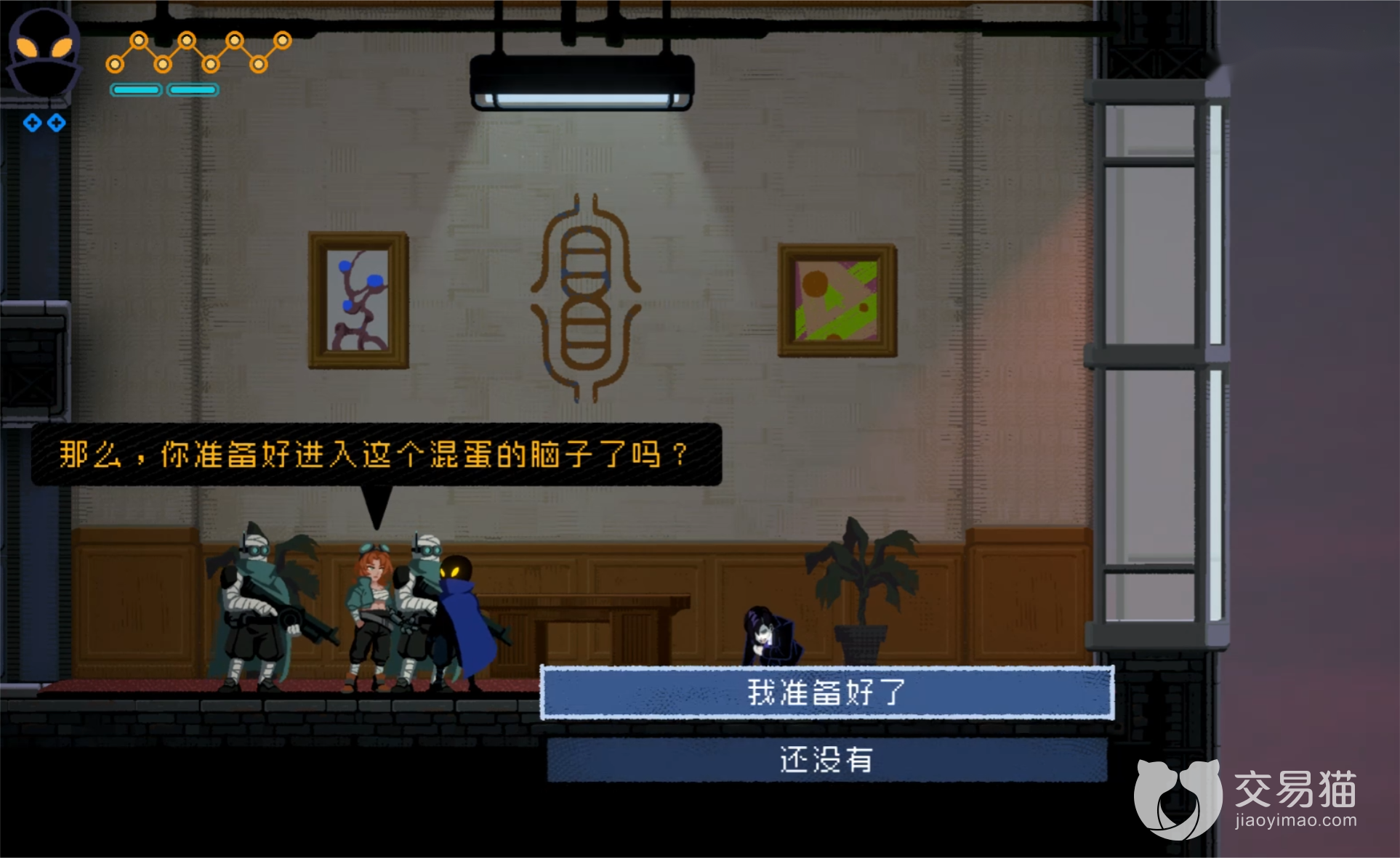 最后会在一个房间里面看见这个角色,这个时候一直不露面的淬八出现了是一个短头发的妹子角色,她回合伙伴控制住幕后黑手,并且希望主角进入他的思维获取想要的情报,点击进入就可以了,玩家会处在一个紫色的迷宫当中,这个时候玩家的黑客眼镜就会大显神威了,使用它可以让一些门打开这样就能顺利的找到自己需要的各种讯息了,完成了这个游戏就算告一段落了。