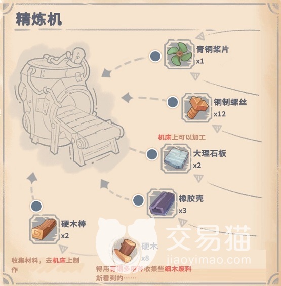 其实这个问题很好解决,就是首先玩家需要去建造一个精炼机,这个其实很简单收集到材料以后点出光盘研究技能直接对着图纸建造就行,小编把这方面的信息以插图形式分享给大家。