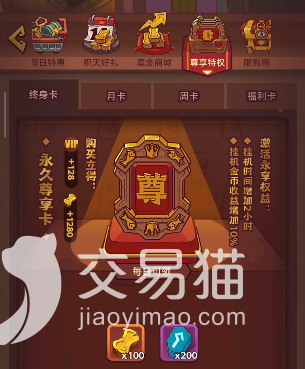 或者一开始就想一直玩并发展下去的,可以直接氪一个终生卡,它会激活游戏内的所有永久权益,玩家哪怕在挂机的时候,所获得的奖励也会比其他人多,还是比较实用的。