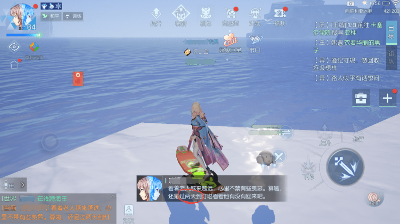 当玩家触发了任务以后,那么就可以去下方找到一个浮冰上的老人,如果不知道具体位置那么多逛逛就能够发现了。
