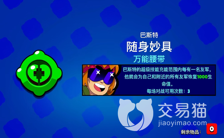 他的随身妙具有两个,第一个是具有回血效果的腰带,只要附近有友军,使用它即可为自己和所有队友回血。第二个妙具则能让下次普攻附带长达两秒的减速效果。