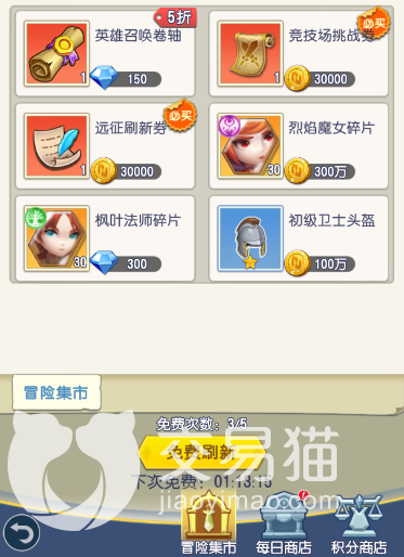 玩家任务中获得的货币,可以在游戏内的集市里购买召唤卷轴和竞技场挑战券,甚至还有装备和角色碎片等物品,可以帮助玩家更快的发展起来,一天有五次免费刷新的机会,建议玩家把次数刷满。